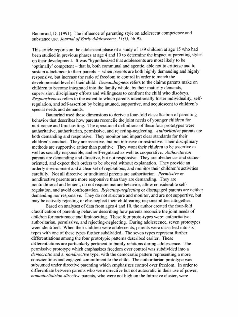 Baumrind's parenting styles baumrind's taxonomy of parenting styles includes all of the categories and terms that we have been using as a discipline—authoritative, authoritarian, and permissive. Parenting Styles And Adolescent Development. By Baumrind (1991). Unlike our present discussions, though.